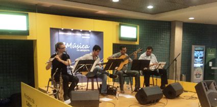 O projeto "Música no Aeroporto", realizado pelo Ministério da Cultura com o apoio cultural da Infraero, busca enriquecer o intercâmbio e a difusão da música instrumental brasileira para todos, abrindo as portas da sonoridade brasileira para os usuários dos aeroportos e o mundo.